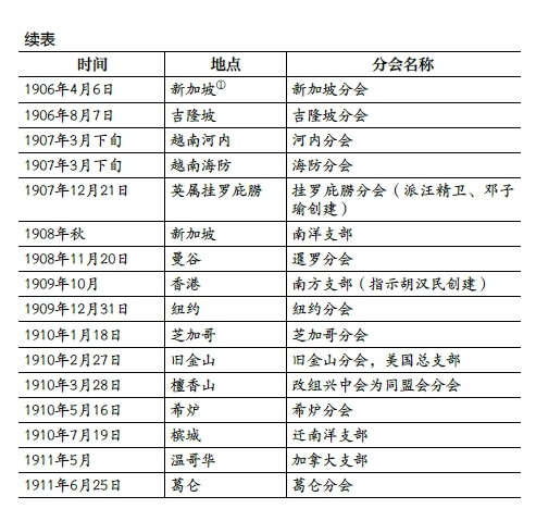 其二,在华侨集中的各城市或将原有的兴中会组织改为同盟会分会,或新建同盟会分会。1906年至1911年,经过孙中山的努力,南洋、北美、檀香山等地的同盟会分会陆续建立。与此前兴中会相比,同盟会是有着政党纲领性质的组织,并且要逐渐从革命政党向执政党的进程努力。在与留美学生顾维钧的谈话时,孙中山曾婉转地敦促每一个有思想的中国人都加入革命党,以实现推翻清王朝,拯救中国。此后中国要建立一个共和国和新政党,最终要使每一个关心国家幸福的人都应该属于这个党。尽管在顾维钧看来,孙中山还没有充分说明这样一个政党应该具有什么样的纲领,但是可以反映出孙中山在此时已经开始考虑革命党与执政党之间的角色转换问题了。