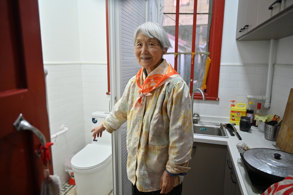 如今,国京路41号的木质楼梯踩上去仍会吱呀作响,但79岁的田依平再也不用深夜倒痰盂。“以前下雨天人都不敢出门,生怕摔一跤没人管,现在好了,晚上起夜再也不用往公共厕所跑了。”站在新装的卫生间门口,她指着洁白的马桶赞不绝口。今年5月初加装厨卫后,她说:“晚上睡觉都踏实多了。”