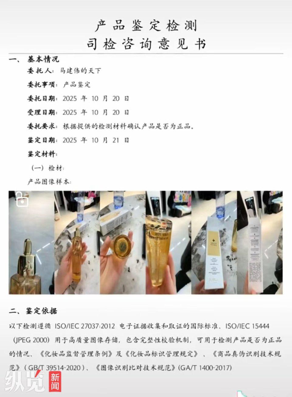 上述意见书称," 鉴定依据 " 为遵循 ISO/IEC27037:2012 电子证据收集和取证的国际标准,ISO/IEC15444 用于高质量图像存储,包含完整性检验机制,可用于检测产品是否为正品的情况。" 鉴定方法与过程 " 称利用了高清图像比对分析,对比正品包装细节;应对光照反射观察法检测瓶盖电镀层反光均匀性;对于法国原装批号样本数据库,验证批号与出厂日期对应关系;检查包装纸纹理及防伪压纹细节等四项。