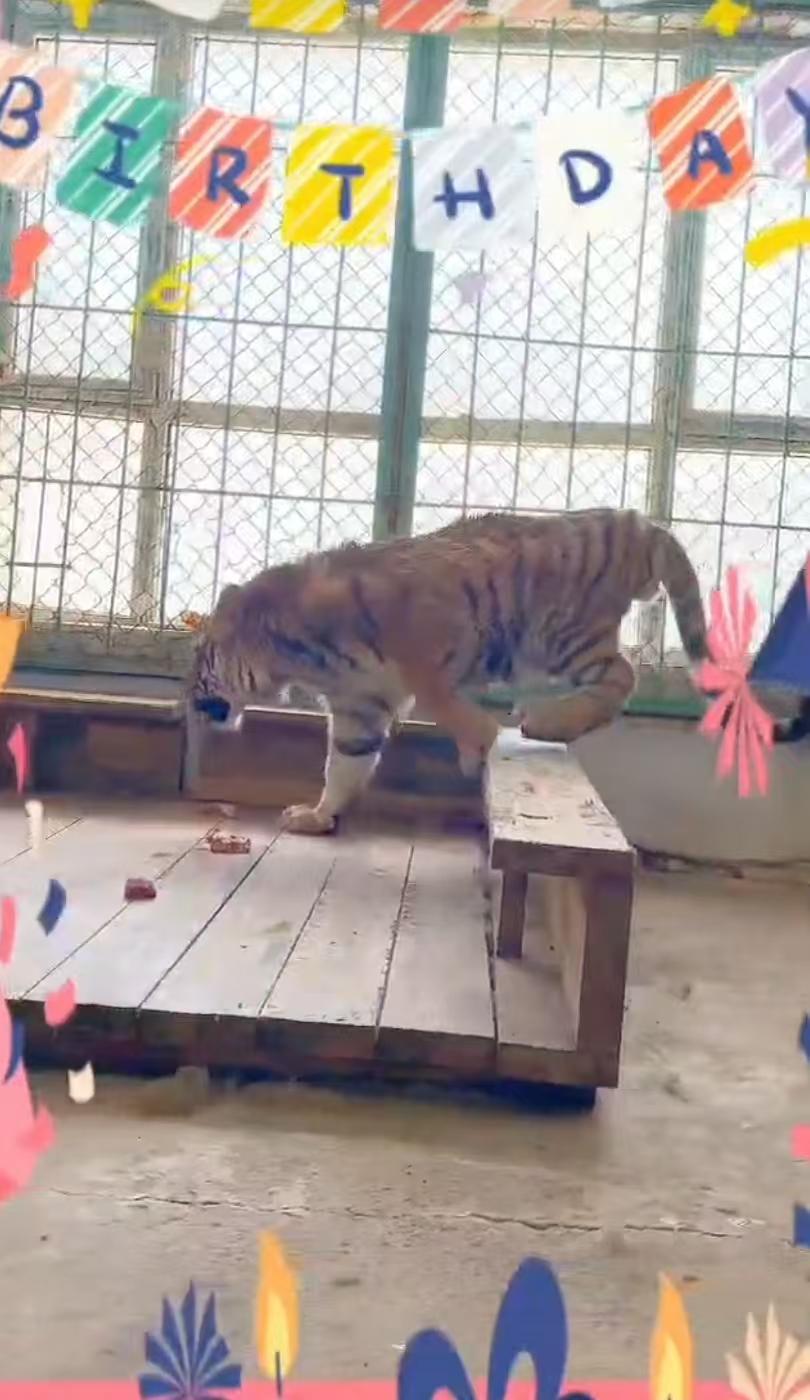 小独苗生日时,虎林园发布的视频截图。 受访者供图