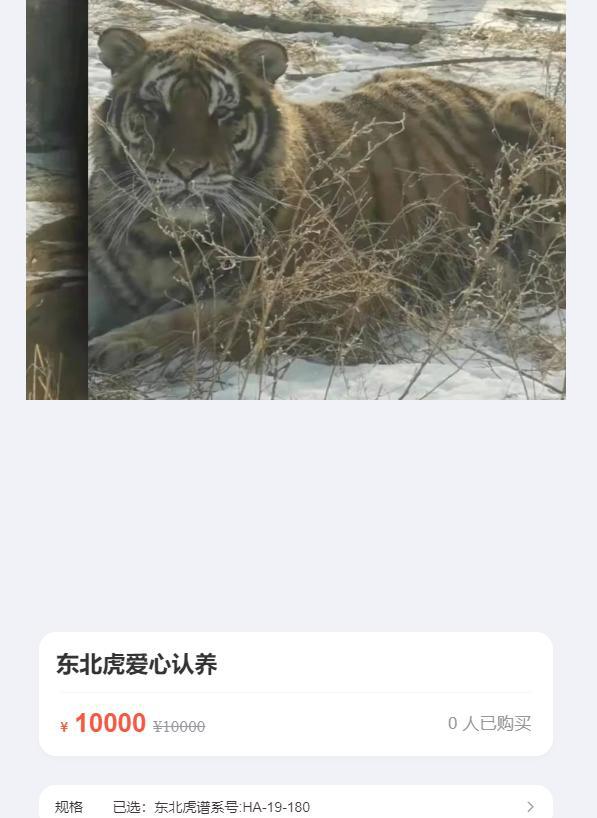 据媒体报道,10 月底,记者曾以认养人身份联系虎林园相关工作人员,询问是否可以认养东北虎,对方称目前认养已停止。