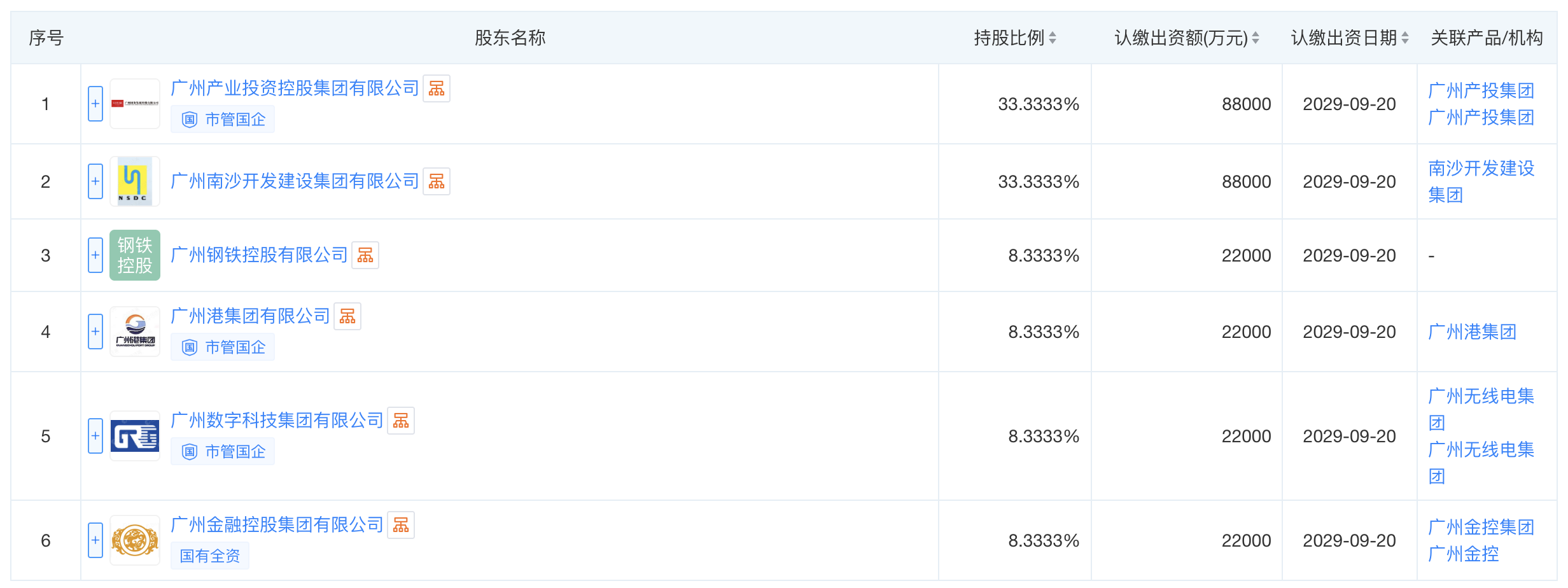公开资料显示,广州聚力成立于2024年10月,是一家以租赁和商务服务业为主的企业。公司注册资本高达26.4亿元,由广州产业投资控股集团有限公司、广州南沙开发建设集团有限公司等六家国有企业共同持股。虽然成立时间较短,但背靠实力雄厚的股东,在产业投资与资源整合方面具有显著优势。