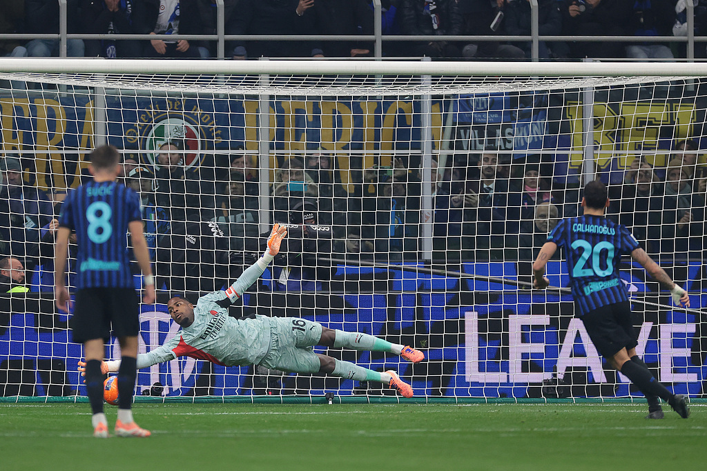 AC米兰1比0国际米兰,恰尔汗奥卢点球不中