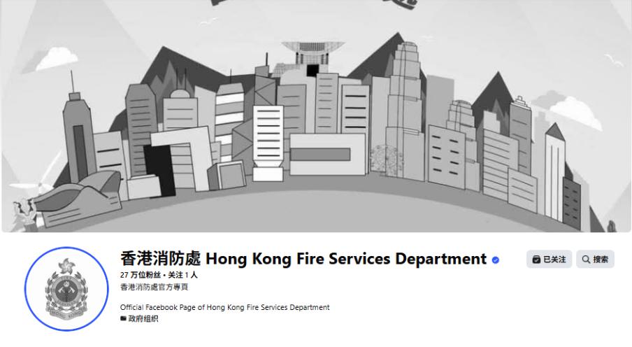 (香港消防处把 FB 首页改为黑白色,悼念何伟豪)