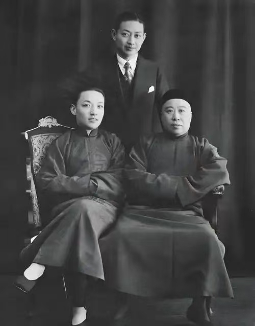 中间为梅兰芳,左为王少卿,右为徐兰沅