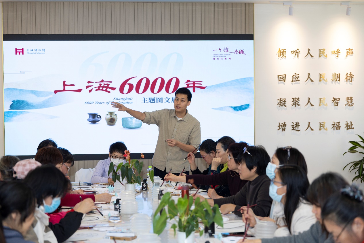 此外,主办方还邀请考古专家、文博学者进社区开讲座。文化中心的视听教室,专家以《“地书”揭示上海6000年》为题,结合上海博物馆“考古上海”展,从考古实证讲述上海六千年历史,同时解读“何以上海”的历史密码。