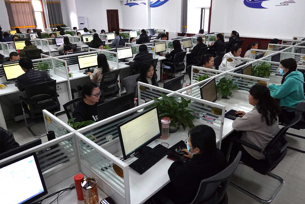 2023年2月16日,陕西省榆林市清涧县,工作人员在进行数据标注。数据标注为人工智能产业中开发机器学习模型的一环。清涧县数字就业中心成立三年多来,通过培训当地女性、返乡年轻人等做数据标注师,助力乡村女性在本地就业。(图片来源:视觉中国)