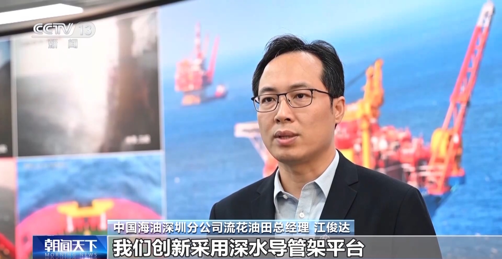 中国海油深圳分公司流花油田总经理 江俊达:我们创新采用深水导管架平台和圆筒型浮式生产储卸油装置的开发模式,探索形成一套礁灰岩油藏稳油控水技术体系,实现了流花油田产能的高效释放,成功盘活了亿吨级的原油储量,为我国未来规模化、效益化开发深水油田探索出了切实可行的“中国方案”。