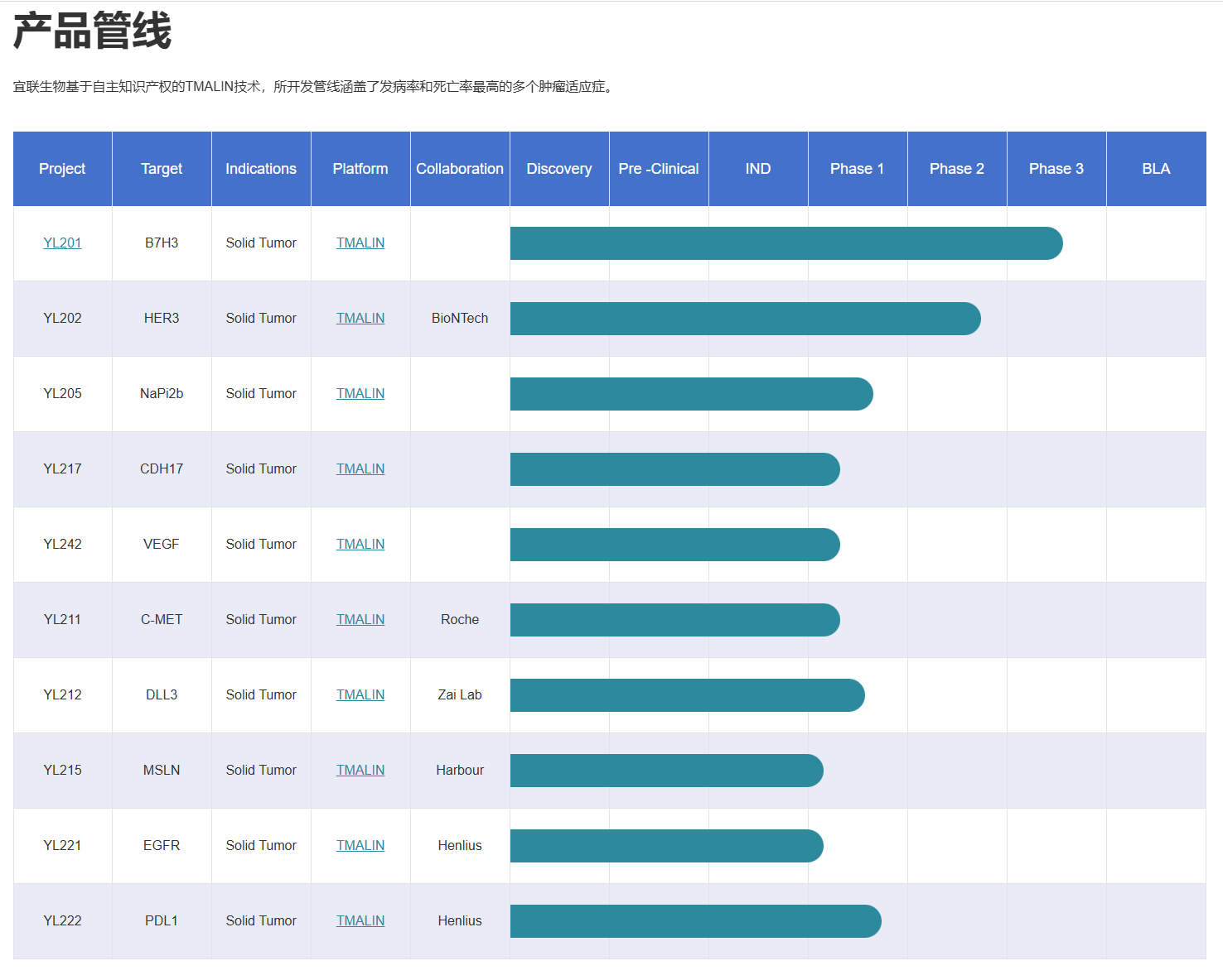 从管线进度来看,这6款在研产品中,YL201和YL202进度较快,它们分别进入了三期临床、二期临床,另外4款则处在更早期。