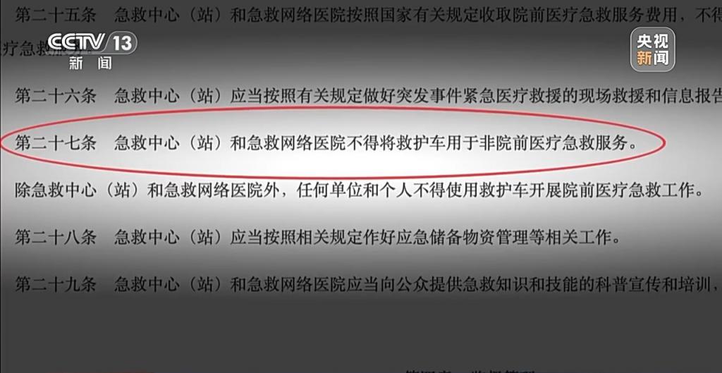 中国卫生法学会副会长 郑雪倩:在这个法律规定里强调的是要保证院前急救工作的落地,比如说 120 它就是专号专用,它的职能和工作性质都是要保证院前半径的抢救工作,而不是非急救的医疗转运。所以政府必须要考虑要满足,在每一个区域大概一个多大的半径下,比如 15 分钟呼救以后,急救车就得到达。