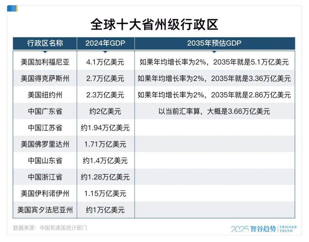 进入全球十大强省的门槛,大致是 1 万亿美元。
