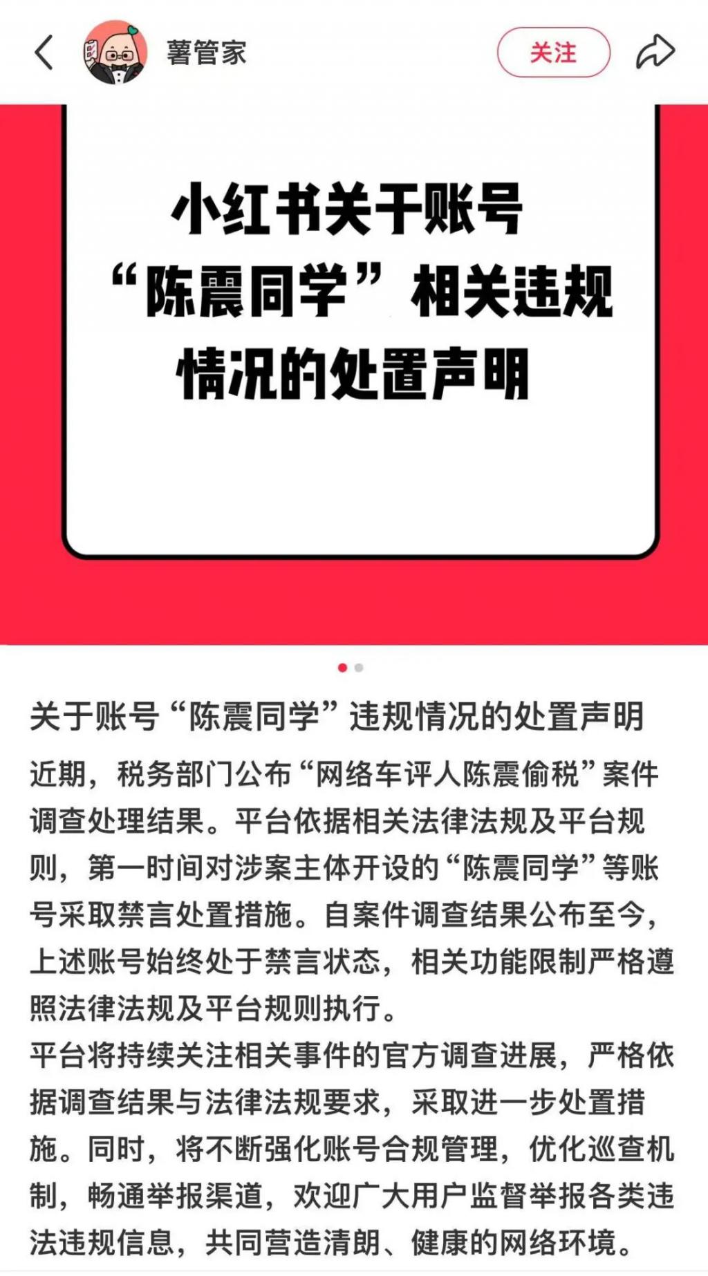 小红书 " 薯管家 " 声明简短有力:" 上述账号始终处于禁言状态。"