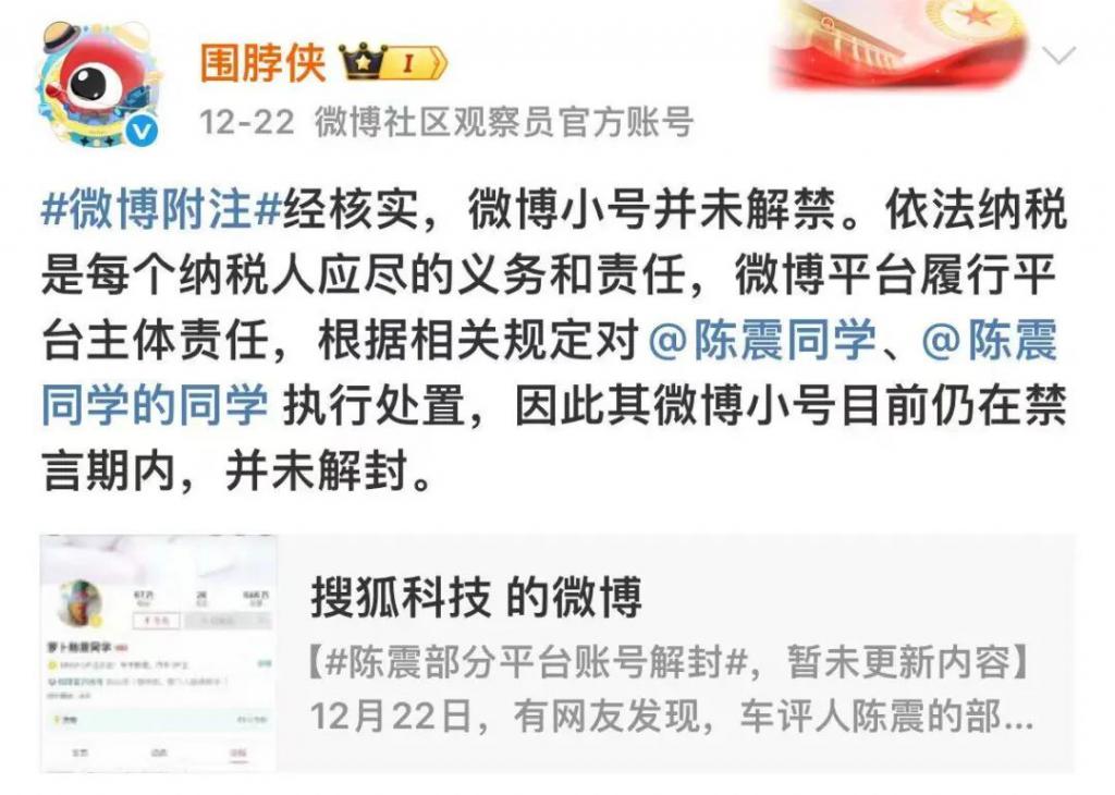 最绝的是微博 " 围脖侠 ",一句 " 经核实,微博小号并未解禁 ",彻底堵死了陈震团队可能准备的后路。