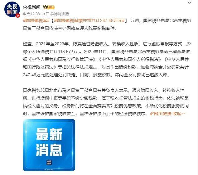 4 日,陈震全平台账号突然被禁言,外界还猜测是言论越界。次日,央视等媒体直接曝光 " 陈震偷税案 ",真相大白于天下。