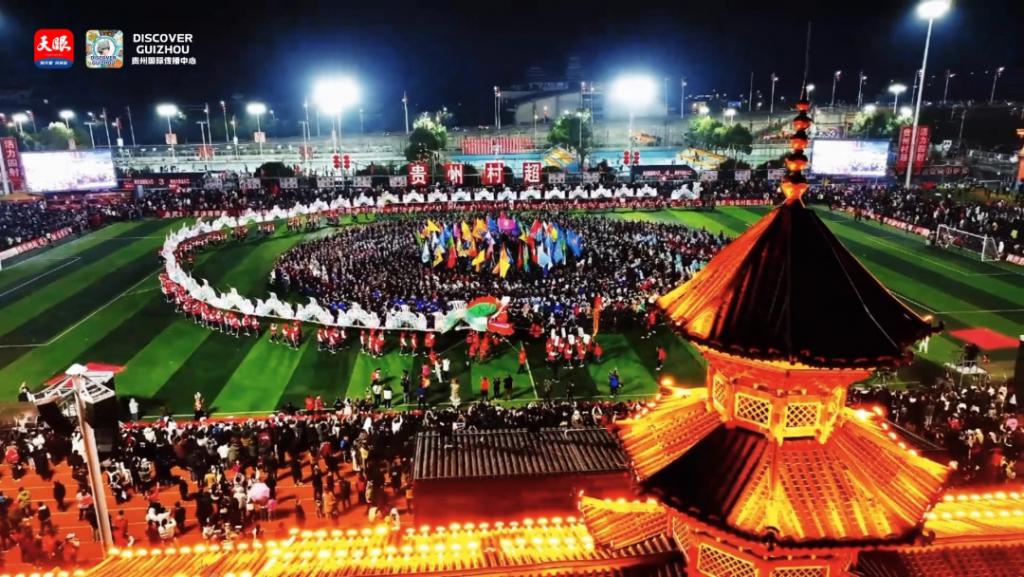 " 侗乡第一寨 " 肇兴侗寨的鼓楼下,侗家儿女们围坐在火炉旁,唱着侗族大歌;西江千户苗寨的夜晚,灯火如星,游客身穿苗族服饰,拍到了 " 人生照片 ";" 村超 "" 村 BA"" 村马 " 等一个个村字号 IP 成为文化交融的大舞台……在贵州,各民族 " 像石榴籽一样紧紧抱在一起 ",得到了具象化的表达。