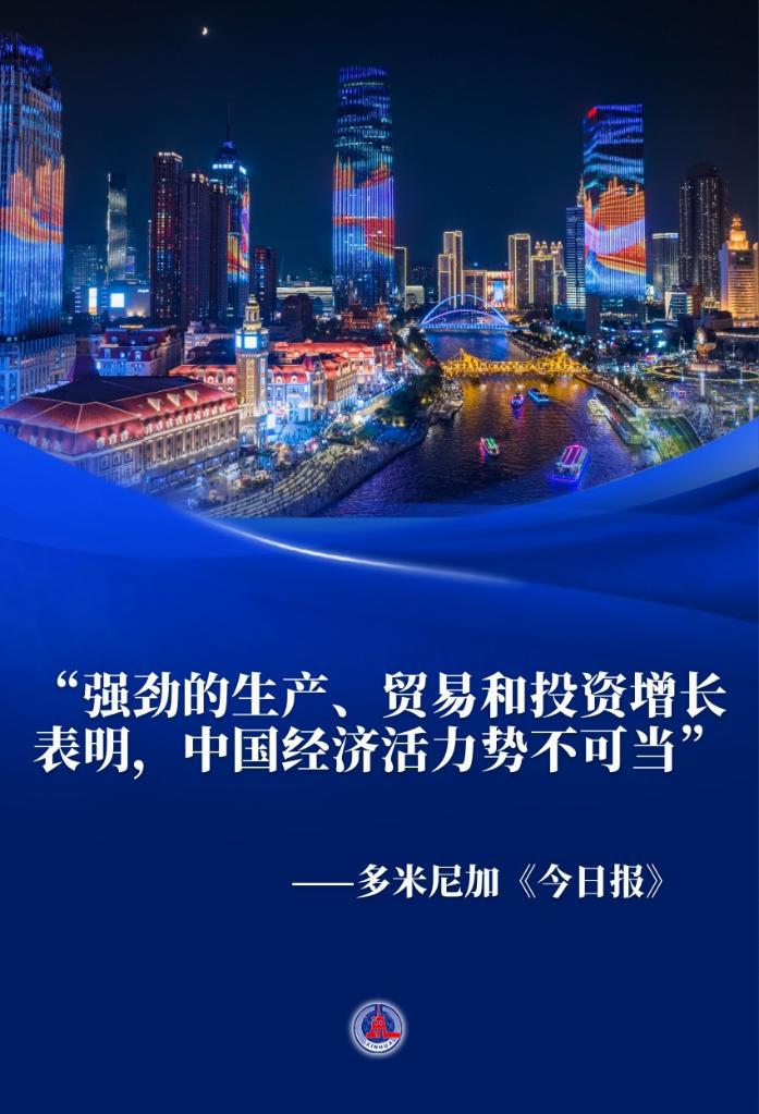 " 永远不要低估中国。" 彭博社 12 月 24 日的文章写到,年初有关中国经济的悲观论调在年末悉数落空," 中国依然是全球最具活力的‘工厂’ "。多米尼加《今日报》说:" 强劲的生产、贸易和投资增长表明,中国经济活力势不可当。"