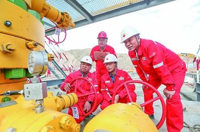 塔里木油田员工在一线分析观察天然气井口数据,全面了解气田生产情况。塔里木油田供图