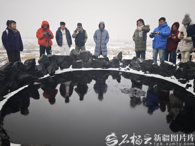 " 热雪新疆 e 起来 · 一路开‘新’暨第三届新疆公路文化节 " 网络主题活动网络名人代表,在克拉玛依市黑油山景区参观。石榴云 / 新疆日报记者 宋海波 摄