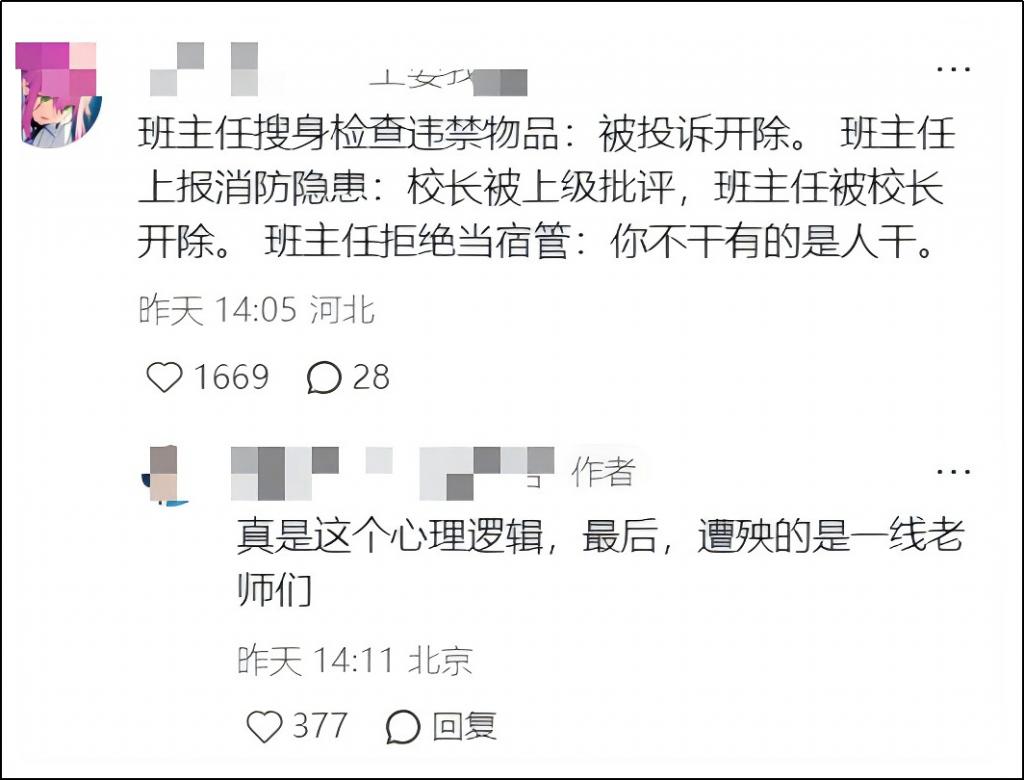 很多网友觉得,学校未发现学生携带打火机等问题是不敢发现,因为一旦去查,学生可能作出过激行为。