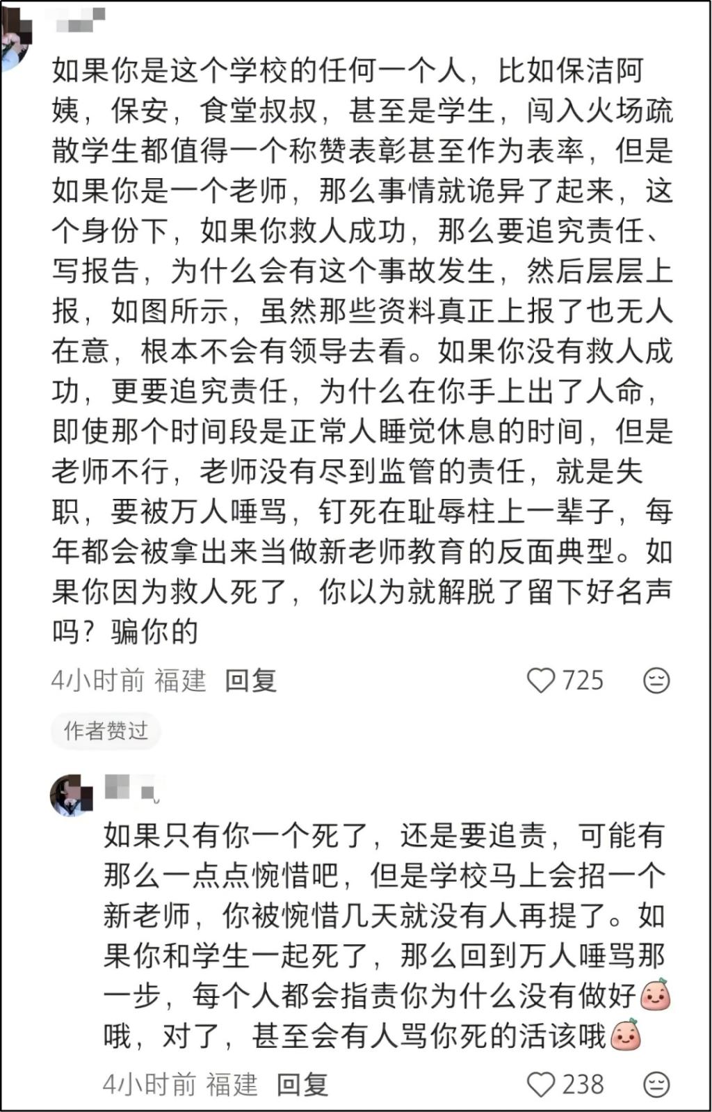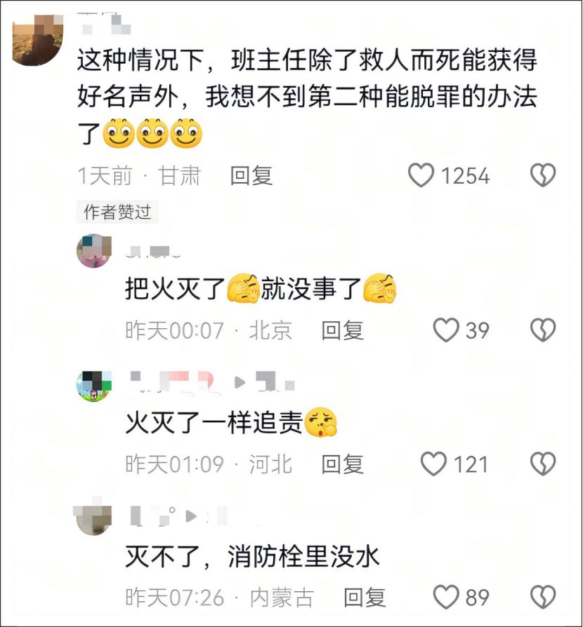 同样,火势大到自己吓瘫,还让未成年学生去救人,是不是也不把学生生命当回事呢?