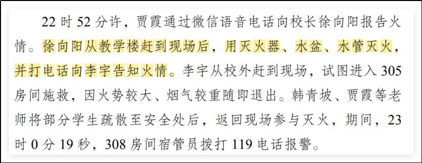 有网友说,从发现火起,她好像都在疏散学生,报告里几处写着,所以你说她不及时有效疏散,不是自相矛盾吗?