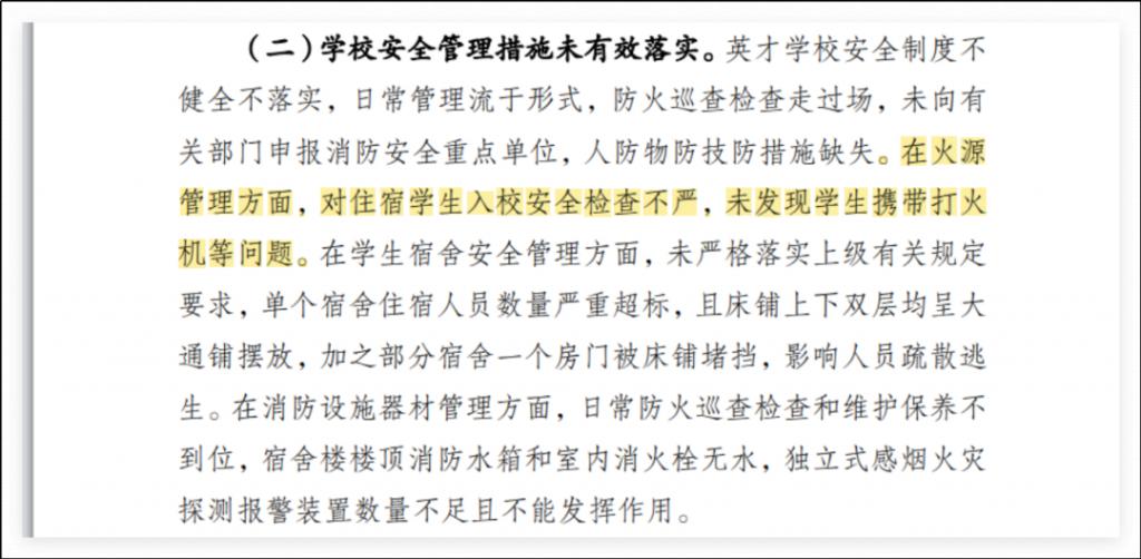 因为她确实没向上报告任何一个消防问题或者宿舍安全问题。