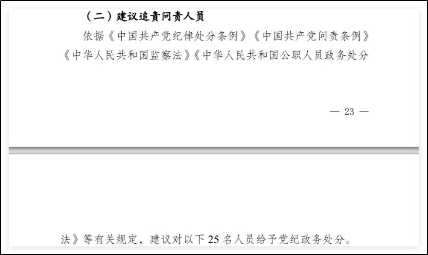 并非,报告里建议追责 12 个部门 25 个人,从检查到审批,到监管都有。
