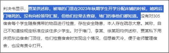 而且本可以让东侧床铺学生逃生的疏散门也是自己擅作主张堵死的。