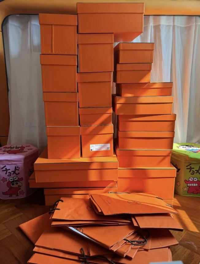 她还注意到,Logo 醒目、设计简约的基础款往往更容易脱手,而追逐潮流的限量款或季节性单品,则迅速贬值。最令她意外的是,连爱马仕那些印着橙色烫金标志的包装盒,也能在二手平台卖出三五百元一个。