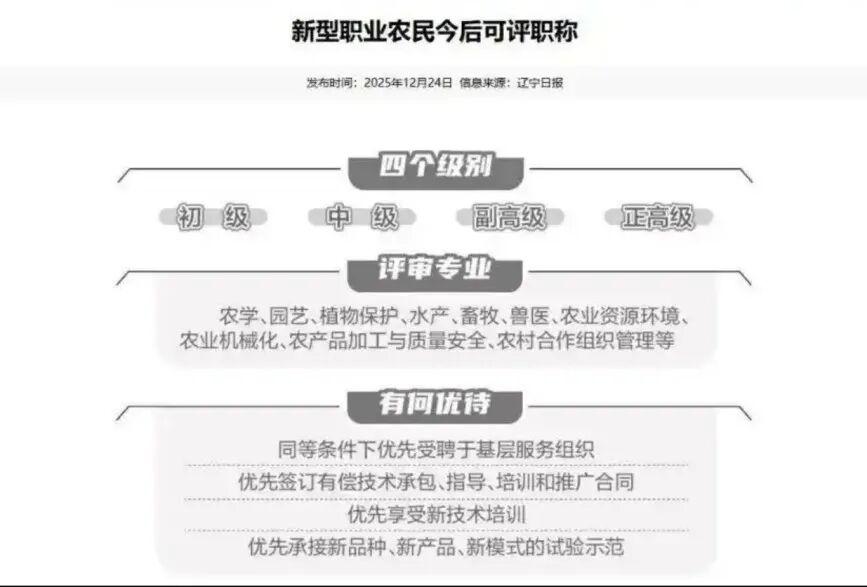 也因此,当 " 辽宁给农民评职称 " 的消息登上热搜时,很多人表示不甚理解,甚至有人表现出负面的看法,认为 " 农民评职称 " 听起来像是把原本朴素的生产活动,硬生生塞进一套行政化的评价框架之中。