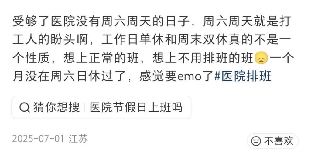 这家每周只有 1/10 的周末双休概率,比张水华所在科室更低。