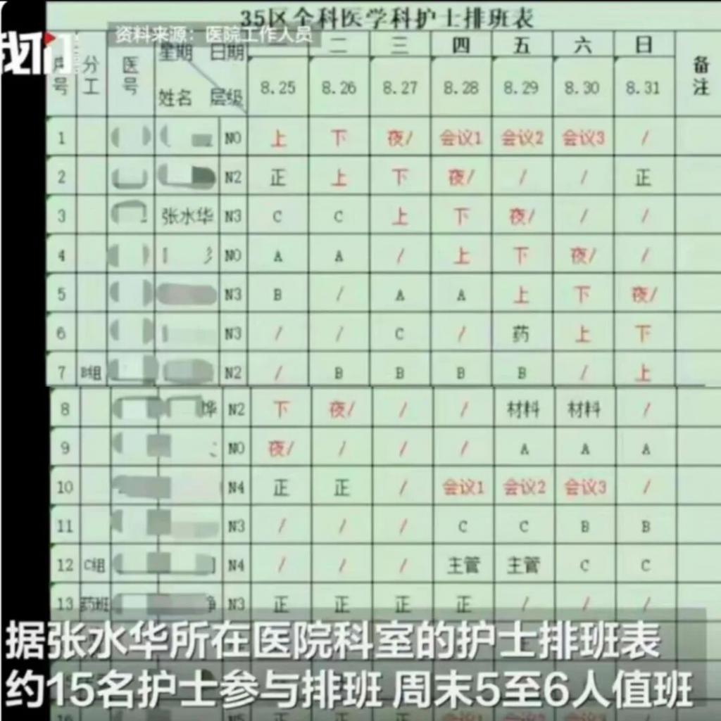 网上有挂张水华所在科室的 " 排班表 "。