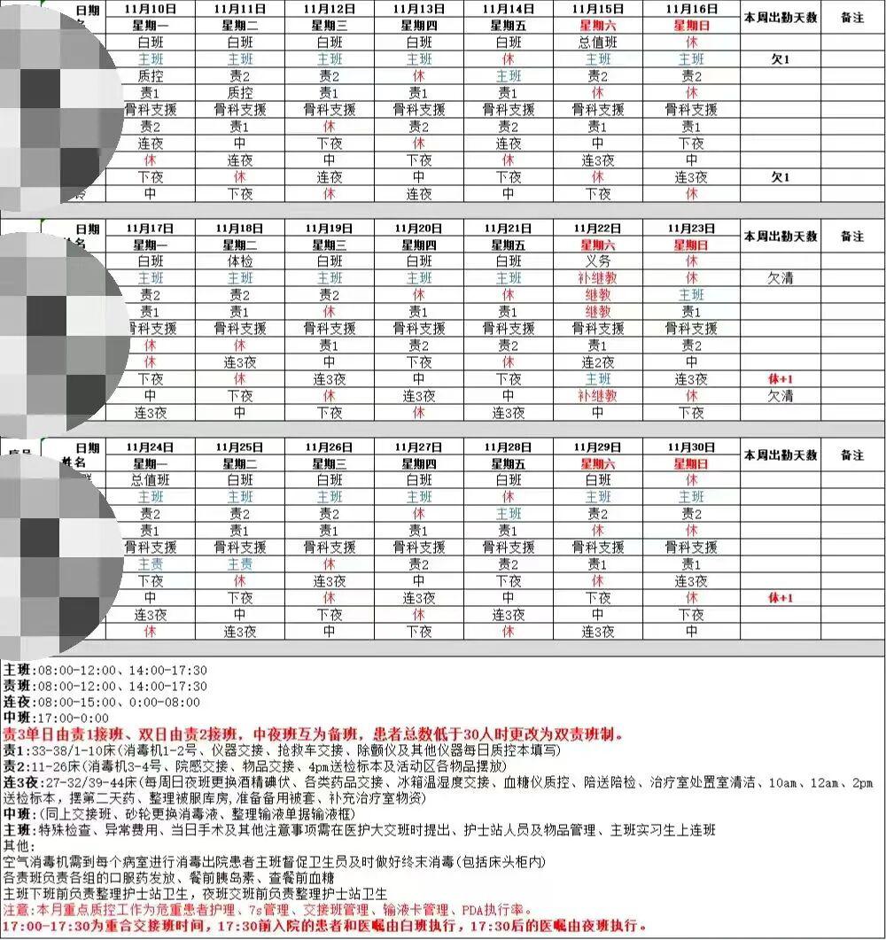 怕这图不一定保真,我们又找了其他的排班图。