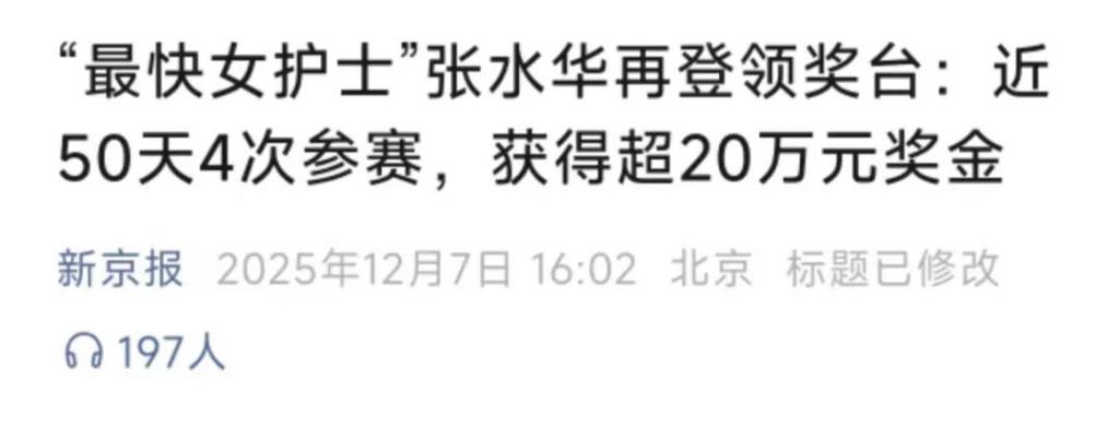 还有一个更神奇的文章,《新京报视频记者刘锦涵:如何独家采访 " 最快护士 " 张水华?》