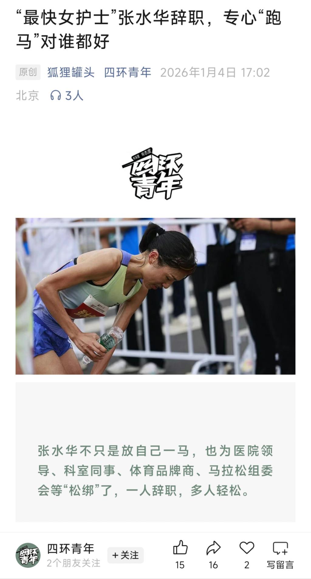 张水华辞职后,四环青年说对谁都好。
