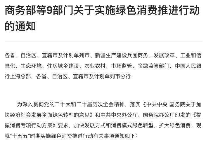 1 月 4 日,商务部等九个部门联合印发《关于实施绿色消费推进行动的通知》,进一步明确要促进汽车绿色消费,支持消费者购买新能源汽车,做强汽车产业链,挖掘二手车、汽车租赁、汽车改装、汽车共享等 " 后市场 " 潜力,探索盘活闲置车辆增收,支持发展房车露营、汽车影院、自驾游等新型消费。