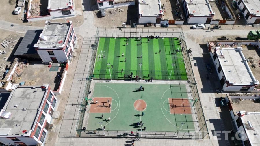 图为长所乡森嘎村新建的两块标准化运动场地 摄影:赵振宇