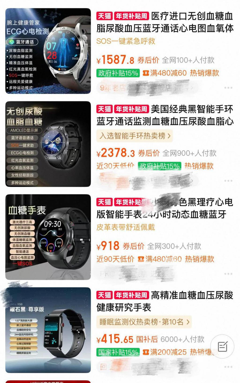 这类产品尤其对中老年消费者颇具吸引力。一位网友无奈吐槽:" 我舅舅让我帮他找测血糖的手表,还说几千块的都能接受。我跟他说测血糖必须采血才准确,他却觉得我跟不上新潮流,转头就自己去直播间下单了。" 另一位网友也反映,家里老人患有糖尿病,学会网购后,花 20 元买了一块无创血糖手表。" 评论区里全是好评。我留言提醒‘这是假货,骗人的’,结果评论很快就被删除了。"