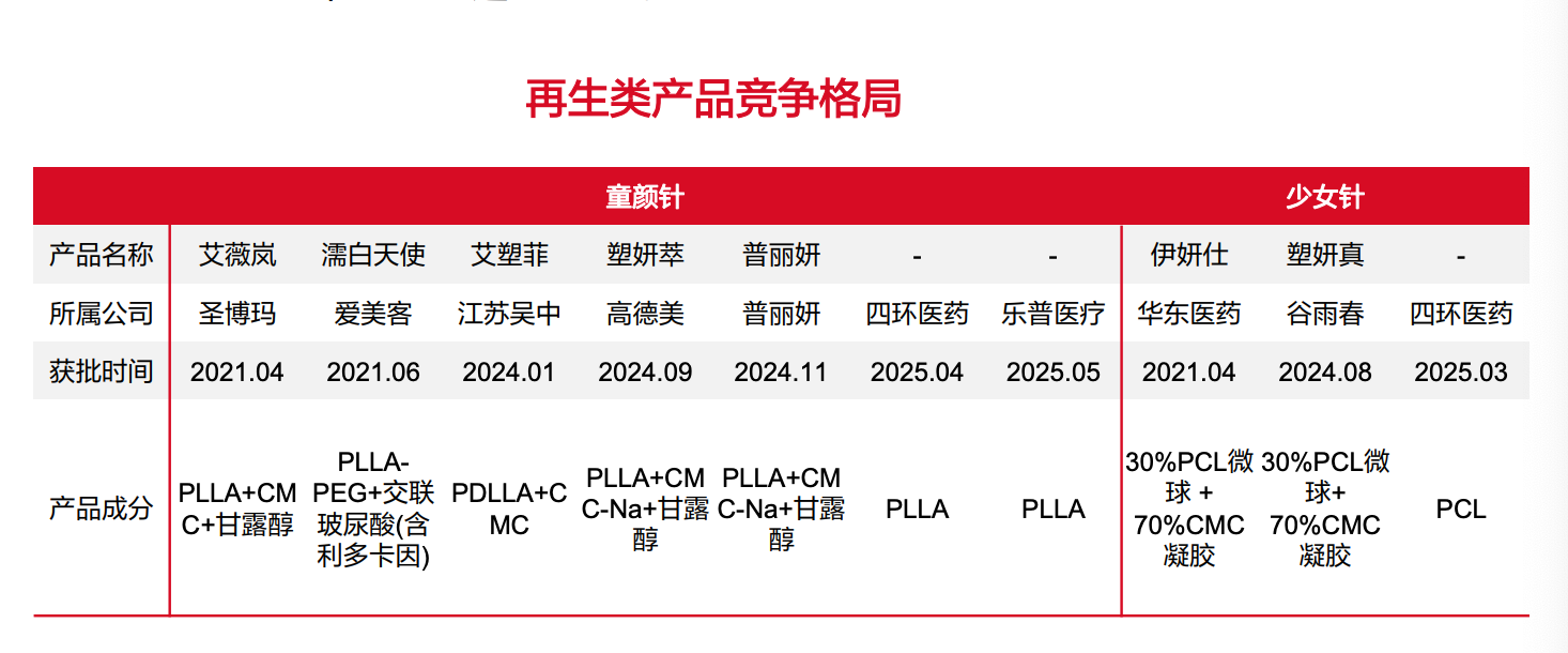 不过,随着玩家持续涌入,再生医美赛道的国内市场竞争如今也逼近红海。界面新闻曾报道,“童颜针”进入战国混战。截至2025年11月末,国内已有10款童颜针、4款少女针获批。另外,琼脂糖、羟基磷灰石等新材料医美注射剂也开始拿证。