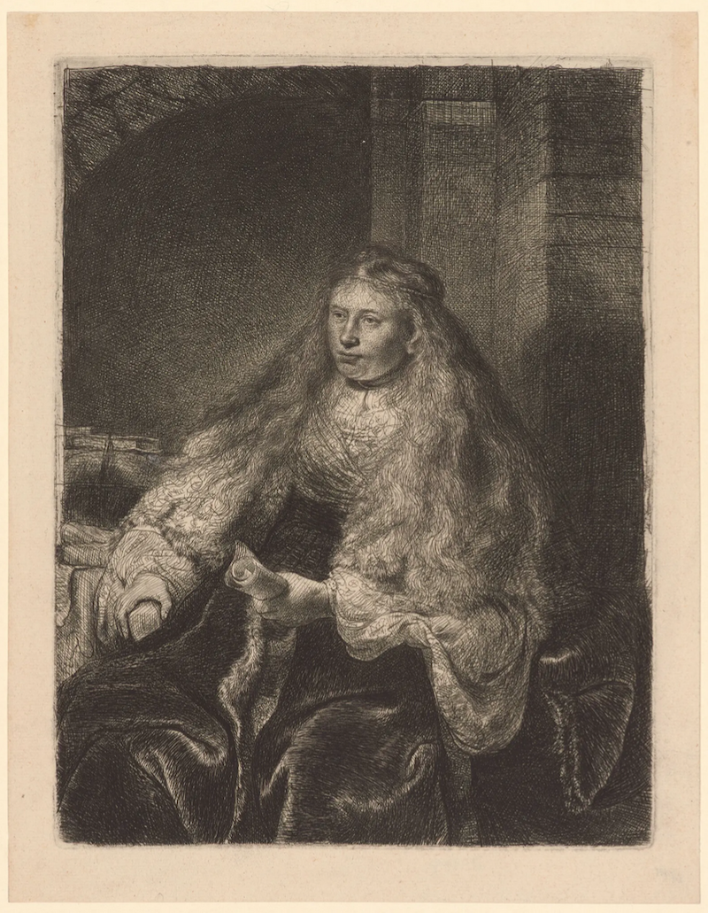 伦勃朗的蚀刻版画《伟大的犹太新娘(可能是以斯帖)》,1635年