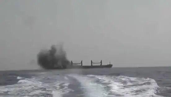 去年早些时候,胡塞武装发布袭击 " 魔法海洋 " 号画面 图:央视新闻客户端