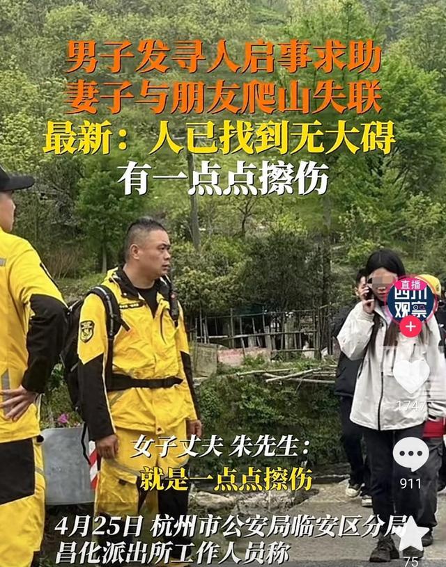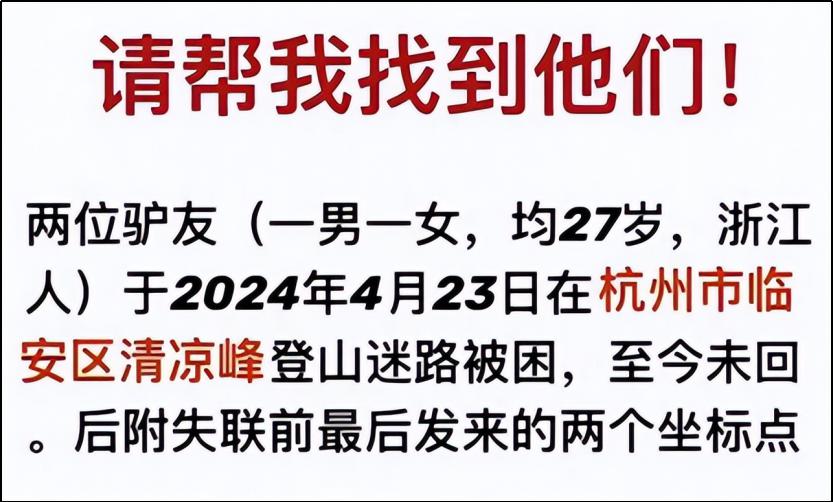 2024 年 4 月,一个网友发寻人启事说妻子和异性驴友登杭州清凉峰时失联了,因为他自己远在外地,只好全网曝光寻人。