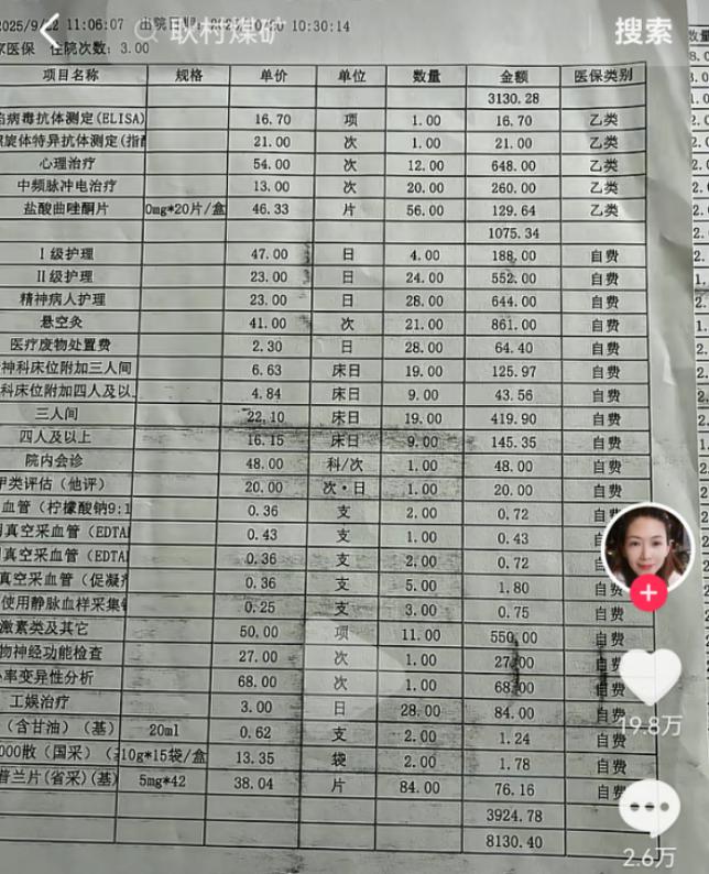 一张常常的住院费用明细单就可以看出她当时的心灵创伤,更别说这段住院期间,丈夫等人不闻不问,毫不关心。
