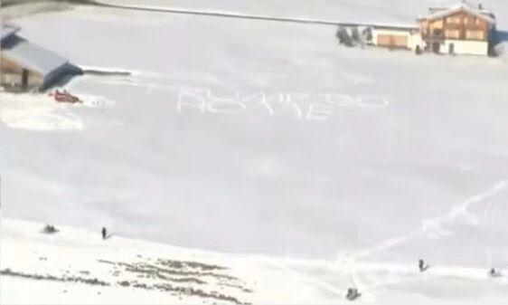 雪地上的 " 特朗普回家 " 字样。图源:GJ
