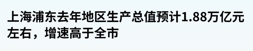 近日,浦东新区人代会披露,预计 2025 年 GDP 总量 1.88 万亿元左右,占上海全市 1/3 左右。