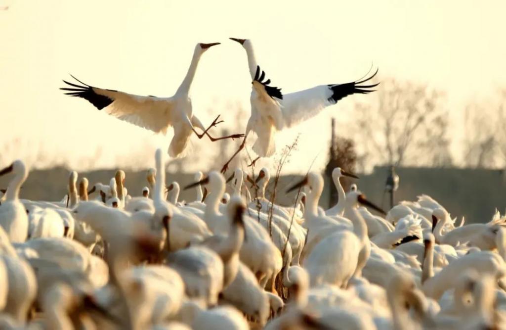 例如在鄱阳湖的插旗洲和五星白鹤保护小区,人们专门种植庄稼而不收割,将其留给白鹤、天鹅等鸟类取食。当食物不足时,当地还会额外购买玉米、稻谷进行投喂,以维持鸟类的生存。