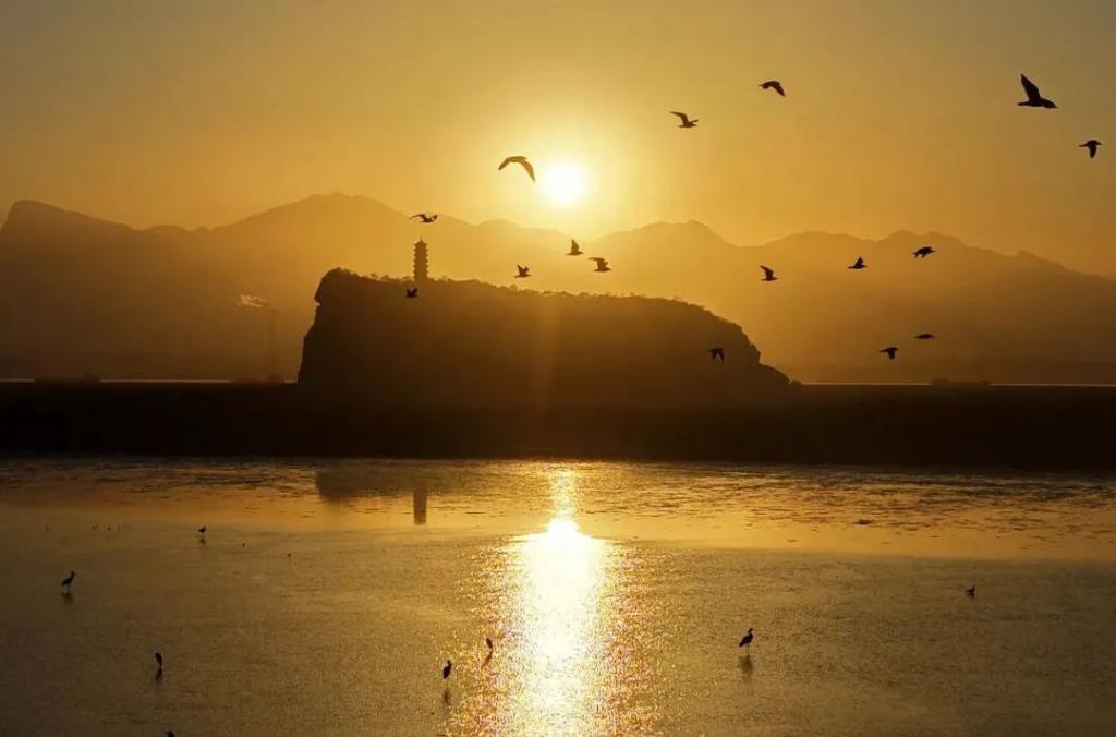 现在正是候鸟在南方越冬的关键季节,在落日晚霞中,万鸟翩飞的景象频频被记录下来,给人类带来美好的慰藉。