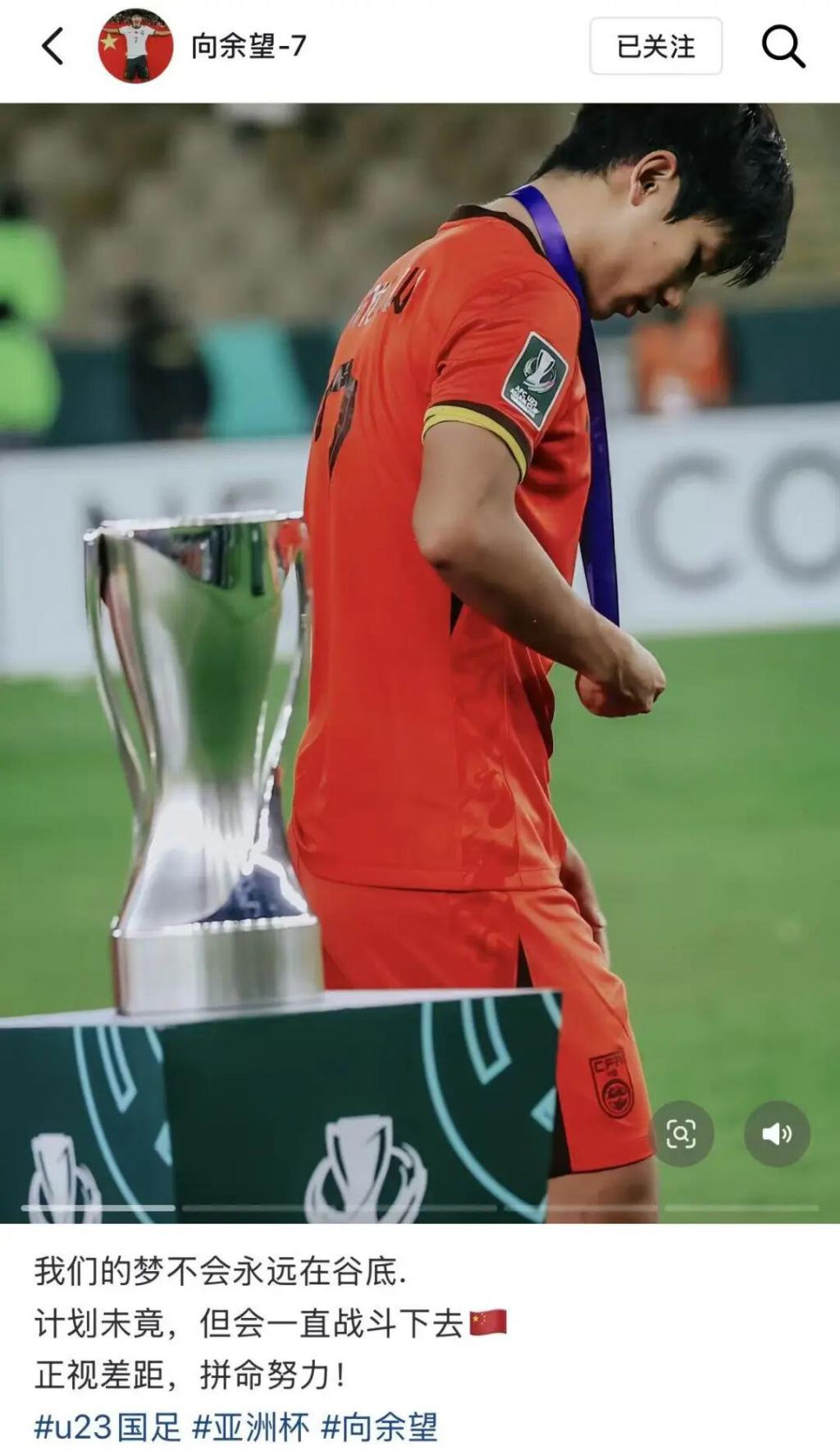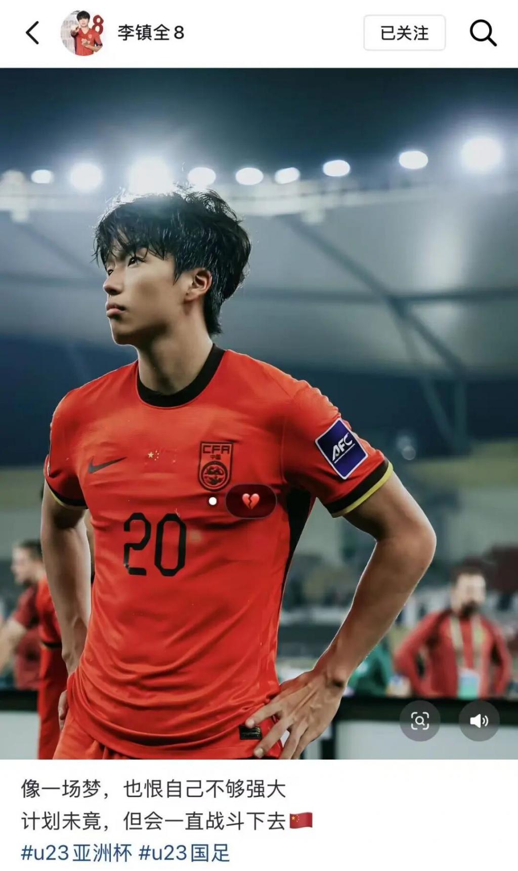 赛后,U23国足队员在社交媒体表达了自己在赛后五味杂陈的情绪。" 计划未竟,但会一直战斗下去!" 是这群创造历史的青年球员最大的感受之一。