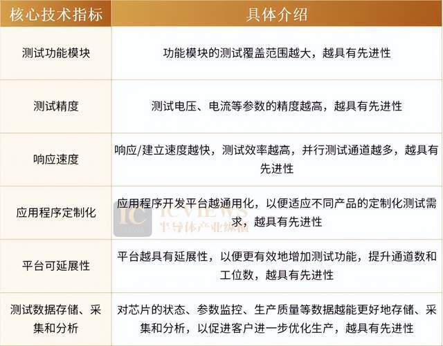 半导体测试机本质是软硬件一体化设备,核心测试内容涵盖直流参数(电压、电流)、交流参数(时间、占空比、总谐波失真、频率等)、功能测试等,衡量半导体测试机技术先进性的关键指标包括测试功能模块、测试精度、响应速度、应用程序定制化和测试数据存储、采集和分析等。值得注意的是,行业内 " 测试机(Tester)" 与 "ATE 系统(ATE system)" 本质同义,仅因翻译习惯不同而存在表述差异。