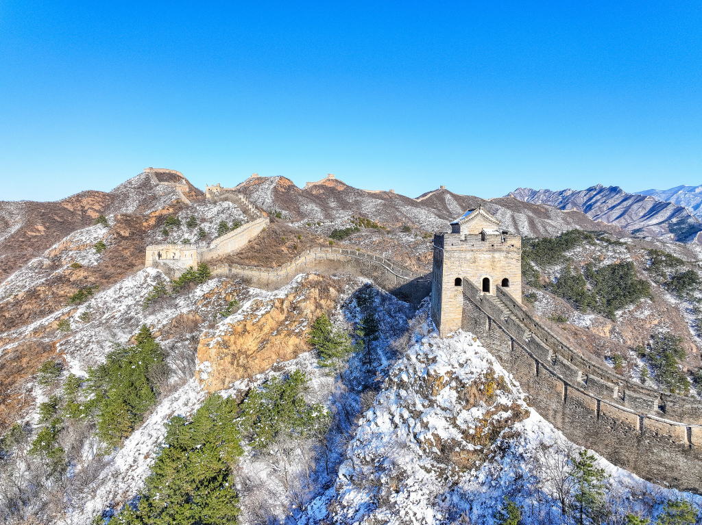3月16日,北京,航拍春雪后的北京金山岭长城雪景风光,银装素裹,巍峨壮观,长城与大地彷佛盖了一层白纱。